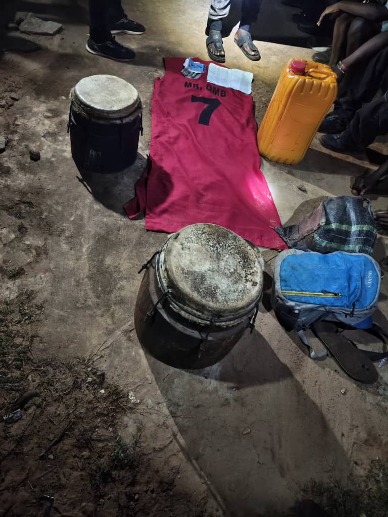 In its sustained efforts to curb cult-related violence and ensure a peaceful atmosphere ahead of the November 8, 2025 Governorship Election, operatives of the Special Anti-Cult Squad (SPACS) Enugu-Ukwu in collaboration with Agunechemba Vigilante Operatives, in the early hours of today 26th October 2025 arrested 7 (seven) suspected members of the Black Axe Confraternity. The suspects were arrested during an initiation ceremony in a bush at Obinagu, Abagana, Njikoka Local Government Area. One 25-litre keg containing red liquid substance, Red ritual cloth, 2 (two) wooden drums, Footwear belonging to the suspects and other accomplices were also recovered at the scene.